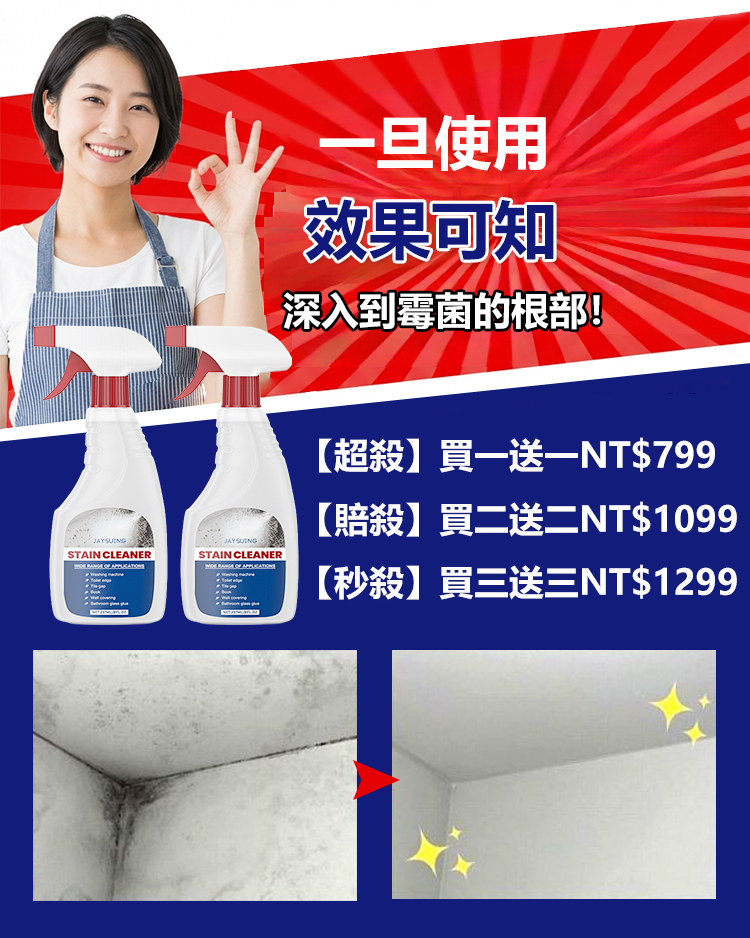 牆面去污除霉翻新清潔噴霧